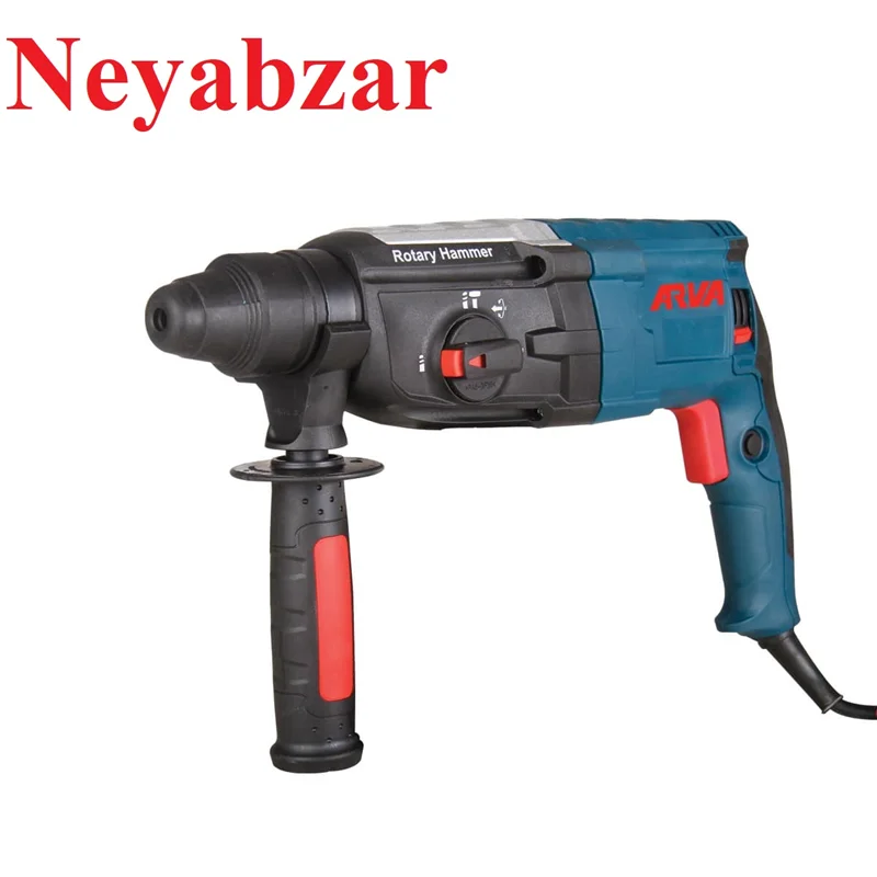لوازم جانبی: دسته کمکی – قلم نوک تیز – قلم سر تخت – 3عدد مته – یک جفت ذغال – عمق سنج ولتاژ برق: تکفاز 220 ولت فرکانس برق ورودی: 50 هرتزقدرت (توان) دستگاه: 800 وات قدرت ضربه: 2.8J – 3Jسرعت بی باری: 1300 rpm سرعت ضربه: 4700 bpmسیستم قلم گیر: 4 شیار (SDS PLUS)قطعات اصلی: آرمیچر – بالشتک – بلبرینگ های ضد غبار – کالکتور – چرخ دنده هاوزن: 3 کیلوگرم کاربرد: سوراخکاری و تخریب مدت گارانتی: 15 ماه ساخت ایران دارای کیف برزنتی دارای بلبرینگ و کلید ضد غباردارای کابل مقاوم با استاندارد VDE آلمان دارای دسته جانبی با قابلیت چرخش 360 درجه دارای سیم پیچی 100% مس با قابلیت تحمل حرارت تا 220 درجه دارای کلید تغییر حالت (4 نوع عملکرد)دارای طراحی ضد لرزش و کم صدا دارای موتور نخ بندی شده جهت حفاظت از موتورمجهز به کلاچ ایمنی