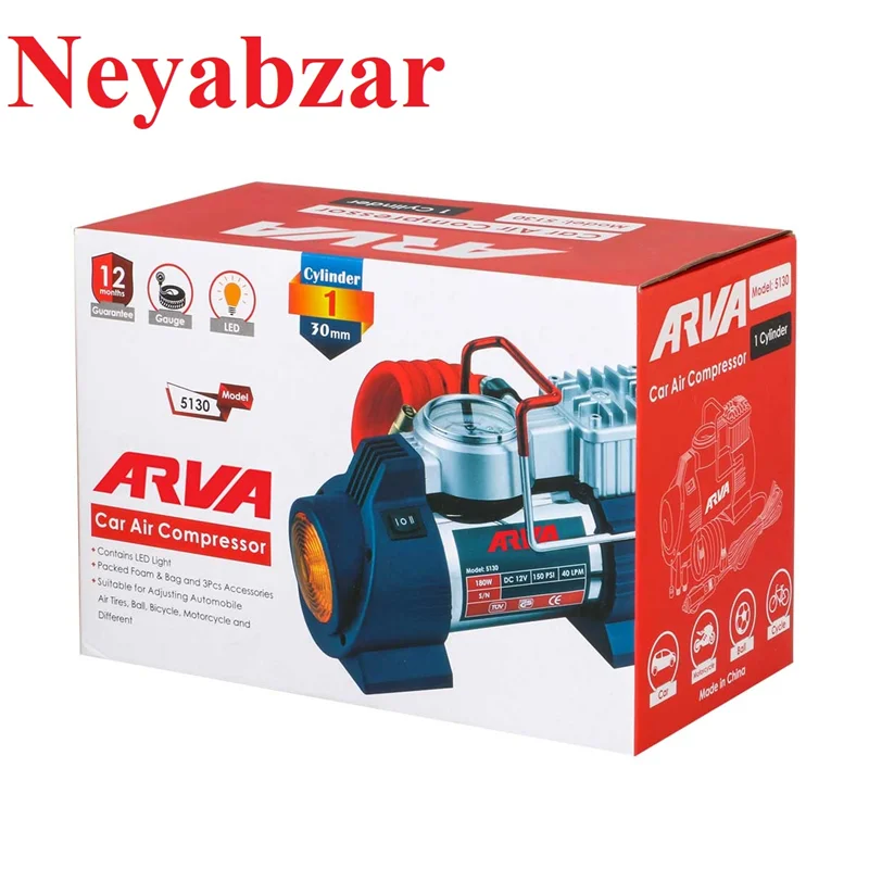 متعلقات: 3 عدد نازل – یک متر شلنگ فنری از جنس پلی اورتان توان: 180 وات ولتاژ: 12 ولت حداکثر فشار تولید هوا: 150 پاسکال قدرت خروجی: 40 لیتر بر دقیقه طول سیم تغذیه فندکی: 3 متر (با متصل کننده فندکی)طول شلنگ: 1 متر (از جنس پلی اورتان)اجزای دستگاه: سیلندر – دسته حمل و نقل – درجه یا نشانگر – چراغ قوه – شلنگ فنری – رابط فندکی مجهز به یک سیلندر 30 متری برای تولید هوادارای سیستم حفاظتی و فیوز کنترل کننده نوسانات الکتریکی جهت محافظت از موتور دستگاهدارای چراغ LED با دو کلیدقابلیت پر کردن تایر خودرو در دو الی سه دقیقه بسته بندی با کیف برزنتی و فوممناسب برای تنظیم فشار هوایی تایر انواع خودرو های سواری و اتومبیل های شاسی بلند، توپ، دوچرخه، موتورسیکلت، قایق بادی، و انواع اسباب بازی …دارای استاندارد CE و GS