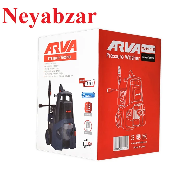 ولتاژ: 220 تا 240 ولت ACفرکانس: 50/60Hzنوع موتور دستگاه: موتور ذغالی توان موتور کارواش: 1500 وات مقدار مقاومت: IPX5حداکثر فشار آب خروجی: 130 بارحداکثر جریان آب خروجی: 8 لیتر بر دقیقه حداکثر فشار آب ورودی: 7 بارتوان موتور جاروبرقی و دمنده: 800 وات حداکثر میزان فشار: 16KPaحداکثر جریان هوا: 1.4 متر مکعب بر دقیقه گارانتی: 15 ماه وزن: 10 کیلوگرم متعلقات و لوازم جانبی:گان 2 تکه نازل قابل تنظیم نازل توربو سوزن تمیز کننده نازل کارواش شلنگ فشار قوی 5 متری PVC2 عدد چرخ رابط ورودی آب کوپلینگ اتصال سریع برای اتصال و جدا کردن سریع شلنگ مخزن مواد شوینده 300 میلی لیتری سری گوشه گیر برس مخصوص مبلمان لوله خرطومی قابلیت استفاده به عنوان کارواش، دمنده و جاروبرقی خشک و ترمجهز به موتور یونیورسال با طول عمر بالامجهز به سیستم توقف اتوماتیک دارای سنسور حرارتی جهت جلوگیری از بالا رفتن دمای موتور طراحی مناسب و قابل حمل مجهز به فیلتر HEPA جهت جذب ذرات معلق هوا