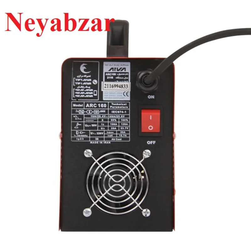 مشخصات محصول ****لوازم جانبی: انبر جوش و انبر اتصال قطعات فنی: چهار عدد خازن، فن 5500 دور، پل دیودولتاژ برق: تکفاز 220 ولت فرکانس: 50 الی 60 هرتزجریان ورودی اسمی: 2 الی 14 آمپرجریان خروجی: 20 الی 160 آمپرکارایی: %98ضریب توان: 0.73درجه عایق کاری: Fدرجه حفاظت بدنه: IP21Sوزن: 4 کیلوگرم ابعاد دستگاه: 240×120×270 میلیمترقطر الکترودهای مناسب: 2.5 و 3 و 3.2نوع سوئیچ قدرت: IGBTالکترود های کاربردی: 7018 – 6013مدت گارانتی: 70 ماه (در طول هفتاد ماه هر ایرادی باشد رفع می گردد) مناسب برای مصارف خانگی دارای ولوم current قابلیت جوش الکترود 2.5 و 3.2 به صورت دائم مجهز به تکنولوژی PWM، سیستم قطع کن حفاظتی فوق هوشمندقابلیت اتصال بند دوشی دارای طراحی مناسب داخلی برای گردش هوای خوب مجهز به صفحه دیجیتال آمپرمتر جهت سهولت تنظیم آمپر خروجی