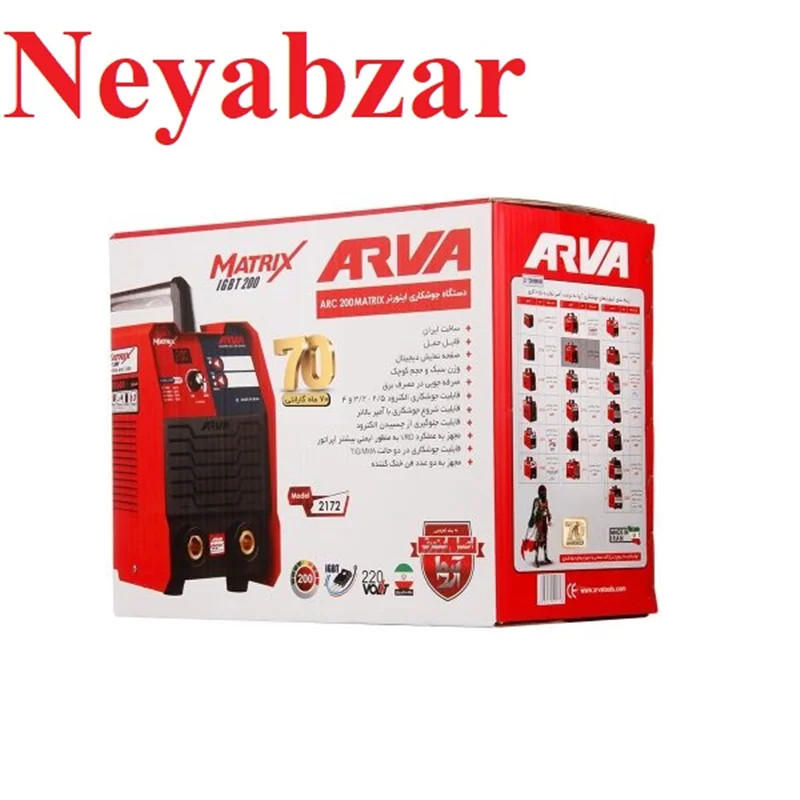 لوازم جانبی: انبر جوش و انبر اتصال به همراه کابل و لتاژ برق: تکفاز 220 ولت فرکانس: 50 هرتزجریان ورودی ماکزیمم: 37.2 آمپرجریان خروجی: 20 الی 200 آمپرضریب توان: 0.73چرخه کاری: 60%کارایی: 85%درجه عایق کاری: Fدرجه حفاظت بدنه در فضای سر باز: IP21Sوزن: 4.5 کیلوگرم ابعاد دستگاه: 225×150×365 میلیمترقطر اکترودهای مناسب: 2.5 و 3.2 و 4 و 5نوع سوئیچ قدرت: IGBTالکترود های کاربردی: تمام الكترودهای موجود در رنج آمپر دستگاه به جز الكترودهای سلولوزی مدت گارانتی: 70 ماه مناسب برای مصارف صنعتی دارای ولوم currentقابلیت جوش الکترود 4 به صورت دائم و الکترود 5 به صورت مقطعی مجهز به تکنولوژی PWM، سیستم قطع کن حفاظتی فوق هوشمندمجهز به صفحه دیجیتال آمپر متر جهت سهولت تنظیم آمپر خروجی طراحی منحصر به فرد بدنه جهت حمل آسان دارای هیت سینک ها با ابعاد، ضخامت و طراحی مناسبصرفه جویی در مصرف برق قابلیت شروع جوشکاری با آمپر بالاترمجهز به خاصیت anti stick یا ضد چسبندگی قابلیت جوشکاری در دو حالت MMA و TIGمجهز به عملکرد VRD و تنظیم خودکار قوس الکتریکی (ARC)