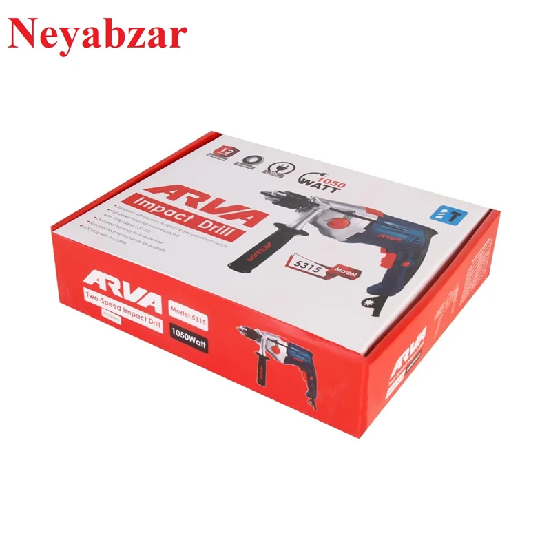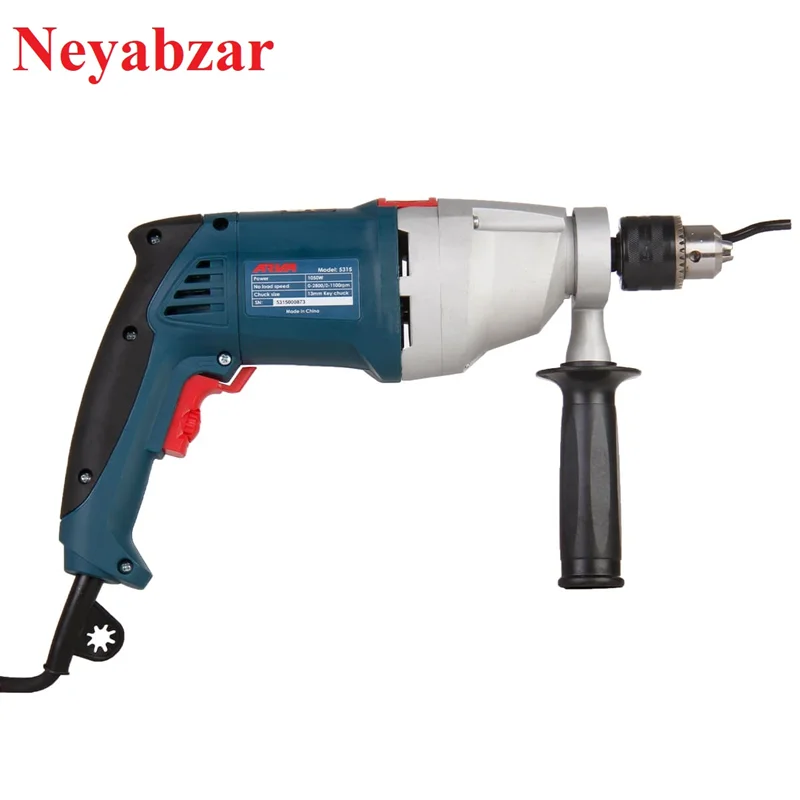 منبع تغذیه: برق توان (قدرت ورودی): 1050 وات ولتاژ ورودی: 220 ولت فرکانس: 50/60Hz قابلیت کنترل سرعت: دارد سرعت گردش در حالت بی باری: 1) 0 تا 1100 دور در دقیقه 2) 0 تا 2800 دور در دقیقه سیستم تغییر جهت چرخش: دارد (کلید چپ گرد و راست گرد) قفل سوئیچ: دارد سه نظام: آچاری 13 میلیمتری قابلیت سوراخکاری در حالت چکشی: دارد ظرفیت سوراخکاری در چوب: 30 میلیمتر ظرفیت سوراخکاری در فلز: 13 میلیمتر ظرفیت سوراخکاری در بتن: 16 میلیمتر کیف BMC: ندارد مدت گارانتی: 12 ماه دارای کلید و بلبرینگ ضد غبارموتور قدرتمند و کارآمد سیم پیچی آرمیچر و بالشتک %100 مس جنس سیم استاندارد (VDE)مجهز به کلید دیمرداردارای بدنه ضد تعریق دسته نرم جهت سهولت کاربرد دارای پوسته گیربکس فلزی